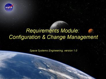 Title: Requirements Module: Configuration & Change Management Space Systems Engineering, version 1.0