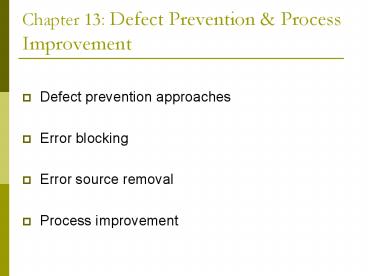 Chapter 13: Defect Prevention & Process Improvement PowerPoint PPT Presentation