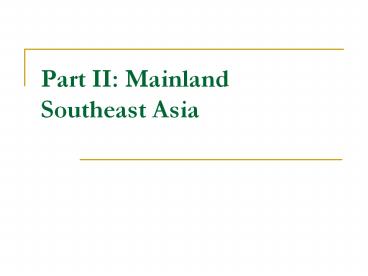 Title: Part II: Mainland Southeast Asia