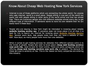 Title: Know About Cheap Web Hosting New York Services
