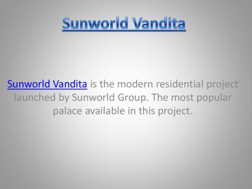 - Sunworld Vandita is the modern residential