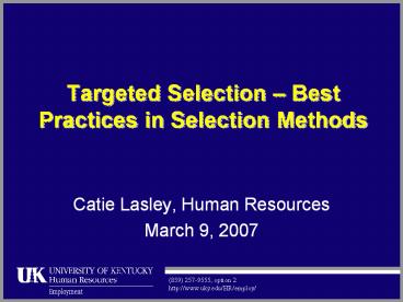 <Notice: Removed> Targeted Selection – Best Practices in Selection Methods PowerPoint PPT Presentation