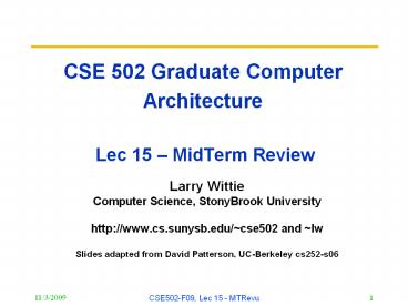 Title: CSE 502 Graduate Computer Architecture Lec 15