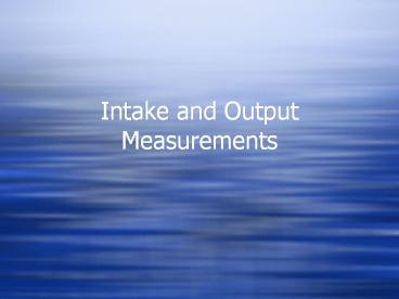 <Notice: Removed> Intake and Output Measurements PowerPoint PPT Presentation
