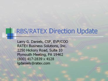 RBS/RATEX Direction Update PowerPoint PPT Presentation
