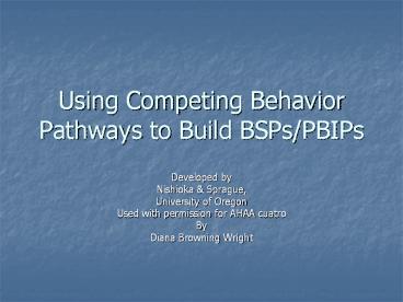 Title: Using Competing Behavior Pathways to Build BSPs/PBIPs