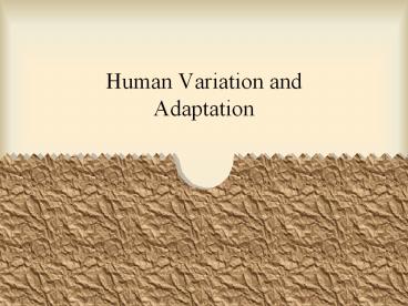Title: Human Variation and Adaptation