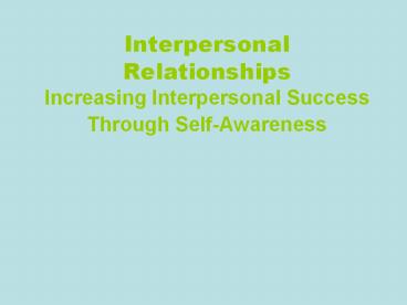 <Notice: Removed> Interpersonal Relationships Increasing Interpersonal Success Through Self-Awareness PowerPoint PPT Presentation