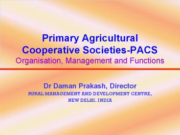 <Notice: Removed> Primary Agricultural Cooperative Societies-PACS Organisation, Management and Functions PowerPoint PPT Presentation