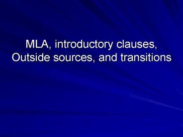 MLA, introductory clauses, Outside sources, and transitions PowerPoint PPT Presentation