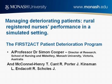 <Notice: Removed> Managing deteriorating patients: rural registered nurses’ performance in a simulated setting. The FIRST2ACT Patient Deterioration Program PowerPoint PPT Presentation