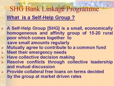 <Notice: Removed> SHG Bank Linkage Programme PowerPoint PPT Presentation