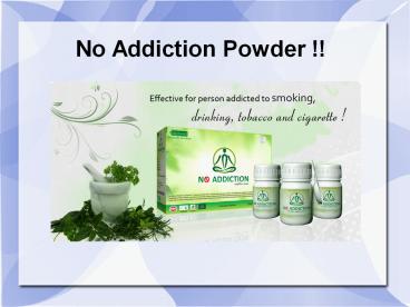 No addiction Powder is one of magical solution to rid from any kind of drugs addict. This is an herbal solution and has no side-effects. Use once and see the result just in few weeks. Visit here for more info - – PowerPoint PPT presentation
