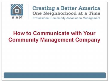 How to Communicate with Your Community Management Company PowerPoint PPT Presentation