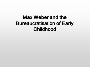Title: Max Weber and the Bureaucratisation of Early Childhood