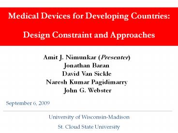 <Notice: Removed> Medical Devices for Developing Countries PowerPoint PPT Presentation