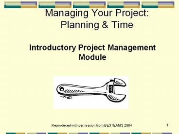 <Notice: Removed> Managing Your Project: Planning & Time PowerPoint PPT Presentation