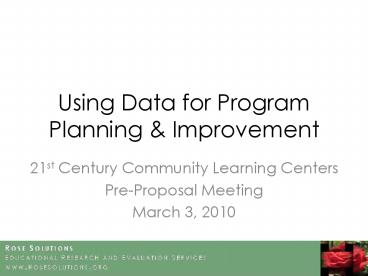 <Notice: Removed> Using Data for Program Planning & Improvement PowerPoint PPT Presentation