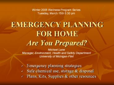 <Notice: Removed> EMERGENCY PLANNING FOR HOME Are You Prepared? PowerPoint PPT Presentation