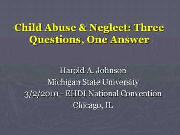 <Notice: Removed> Child Abuse & Neglect: Three Questions, One Answer PowerPoint PPT Presentation