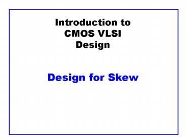 Introduction to CMOS VLSI Design Design for Skew PowerPoint PPT Presentation