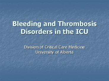 Title: Bleeding and Thrombosis Disorders in the ICU