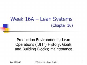 Week 16A – Lean Systems (Chapter 16) PowerPoint PPT Presentation