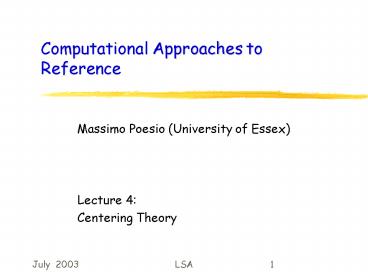 <Notice: Removed> Computational Approaches to Reference PowerPoint PPT Presentation