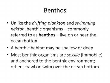 benthos live on or near the ocean bottom - A benthic habitat may be shallow or deep