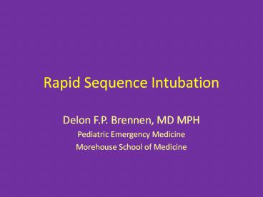 Rapid Sequence Intubation PowerPoint PPT Presentation