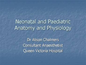 Title: Neonatal and Paediatric Anatomy and Physiology