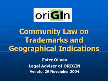 Title: Community Law on Trademarks and Geographical Indications