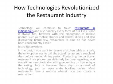 How Technologies Revolutionized the Restaurant