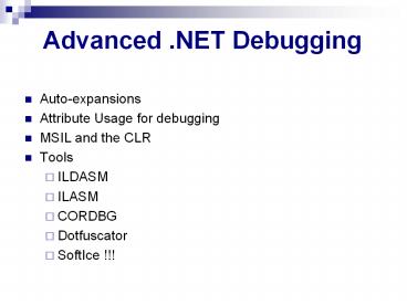 Advanced .NET Debugging PowerPoint PPT Presentation