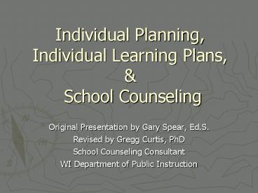 <Notice: Removed> Individual Planning, Individual Learning Plans, PowerPoint PPT Presentation
