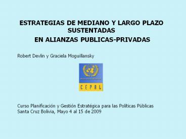 en el marco de alianzas públicas- privadas, - Una versión preliminar Capítulo VI en CEPAL