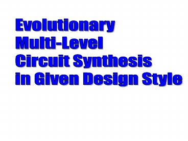 State University, June 1997. - Drechsler, Rolf. Evolutionary Algorithms for