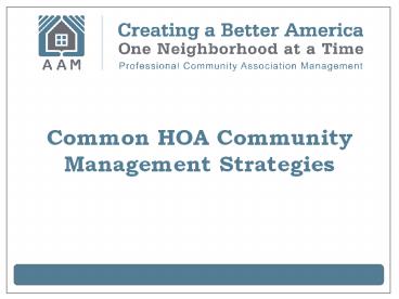 Common HOA Community Management Strategies PowerPoint PPT Presentation