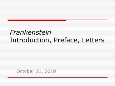 <Notice: Removed> Frankenstein Introduction, Preface, Letters PowerPoint PPT Presentation