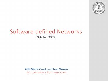 <Notice: Removed> Software-defined Networks October 2009 PowerPoint PPT Presentation