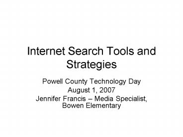 Internet Search Tools and Strategies PowerPoint PPT Presentation