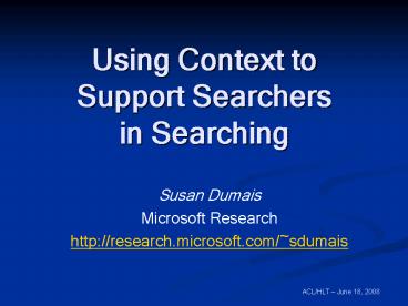 <Notice: Removed> Using Context to Support Searchers in Searching PowerPoint PPT Presentation