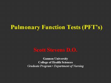 Pulmonary Function Tests (PFT PowerPoint PPT Presentation