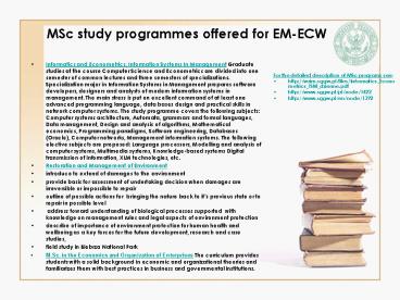 <Notice: Removed> MSc study programmes offered for EMECW PowerPoint PPT Presentation