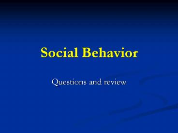 Social Behavior PowerPoint PPT Presentation