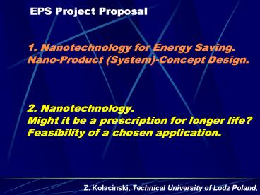 <Notice: Removed> EPS Project Proposal 1. Nanotechnology for Energy Saving. Nano-Product (System)-Concept Design. 2. Nanotechnology. Might it be a prescription for longer life? Feasibility of a chosen application. PowerPoint PPT Presentation