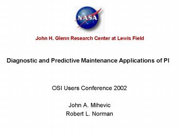 Title: Diagnostic and Predictive Maintenance Applications of PI