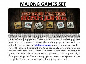 easier ones. There are some mahjong game sets