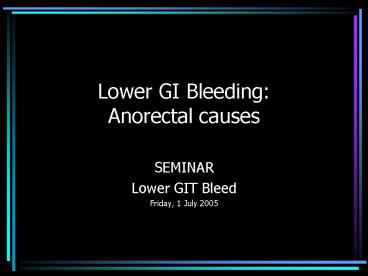 Lower GI Bleeding: Anorectal causes PowerPoint PPT Presentation