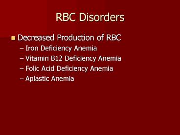RBC Disorders PowerPoint PPT Presentation